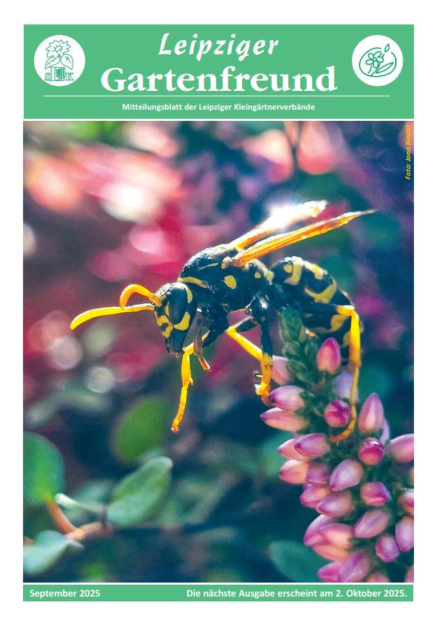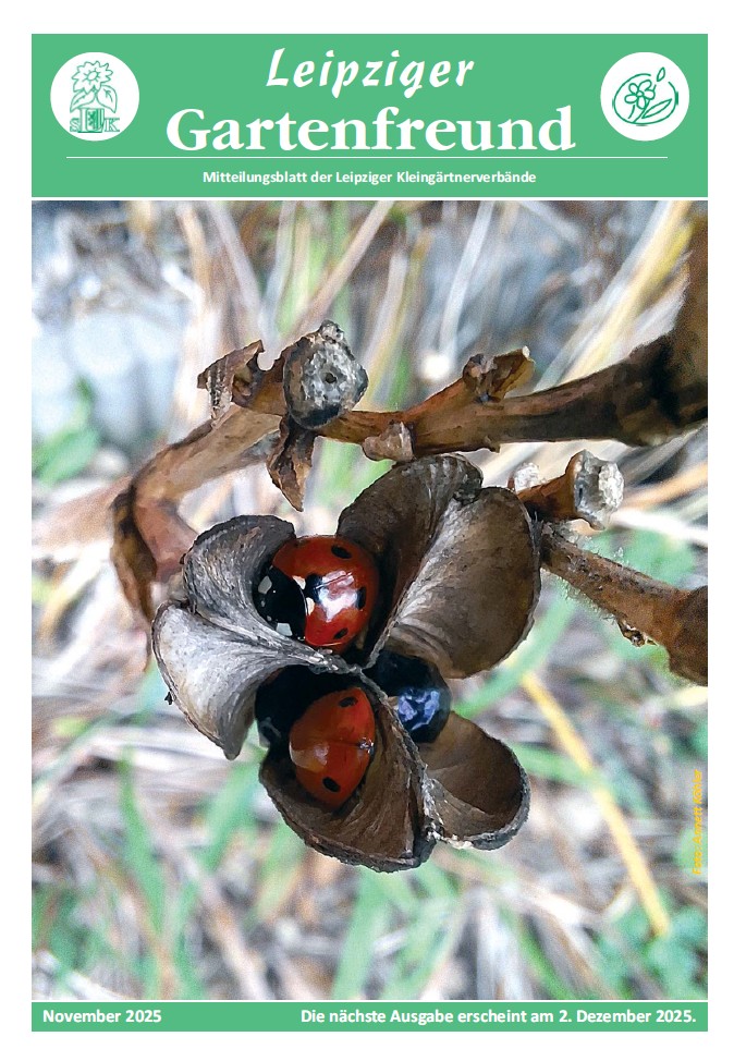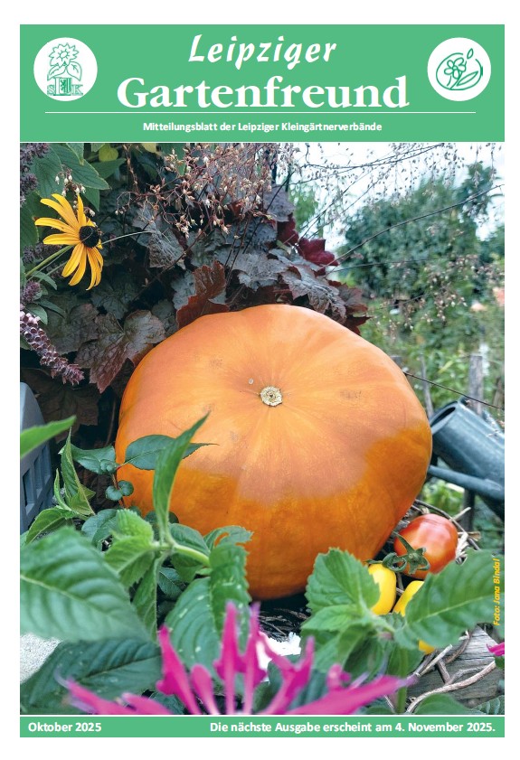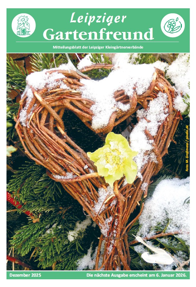 Leipziger Gartenfreund 2025 Leipziger Gartenfreund Vorschau Download 2025 Januar Februar März April Mai Juni Juli August September Oktober November Dezember Vorschau auf Heft 012/2025 (erscheint am 01.12.2025)Erleben Sie mitten im Winter den Frühling — Haus-Garten-Freizeit-Messe 2026Was haben Kleingärten mit Bergbau zu tun?Unsere Rechtsecke: Vor dem Schaden klug seinDie Natur des Jahres 2025 — Grünliche Waldhyazinthe Foto: M. Großmann/pixelio.de Vorschau auf Heft 011/2025 (erscheint am 03.11.2025)Kaiser, Cox oder Gravensteiner oder was?Schönste Kleingartenanlage NordsachsensUnsere Rechtsecke: Rückgabe der ParzelleEtikettenschwindel: Finger weg von ökologischen MogelpackungenDie Natur des Jahres 2025- Der Moorfrosch Foto: Annett Köhler Vorschau auf Heft 010/2025 (erscheint am 01.10.2025)Über den Tellerrand nach Dresden geschautEin Jahrhundert “Am Stünzer Park” e.V.Gärtnern nur mit Regenwasser — geht das?Kreisverband beteiligt sich erfolgreich am Tag der Sachsen und am LandeserntedankfestDie Natur des Jahres 2025 — Streuobstsorte des Jahres Foto: Jana Bindal Vorschau auf Heft 09/2025 (erscheint am 02.09.2025)Digitalisierung — ein Blick in die ZukunftReisen bildet — Dr. Karl Foerster mal dreiUnsere Rechtsecke — Bauen im KleingartenWertermittlung — Pflicht oder Ermessensfrage?Natur des Jahres 2025 — Wiesen-Glockenblume Foto: Jana Bindal Vorschau auf Heft 08/2025 (erscheint am 05.08.2025)Ein Plädoyer für mehr Natur im KleingartenUnsere Rechtsecke: Spielplätze bergen TückenKriminalprävention klappt nicht im AlleingangDie Natur des Jahres 2025- Spanische Flagge (Schmetterling) Foto: Jörg Eckstein Vorschau auf Heft 07/2025 (erscheint am 01.07.2025)34.tag des Gartens — eine gelungene PremiereNeue Mitglieder für den SchlichtungsausschussUnsere Rechtsecke: Befahren der GartenanlagenEin lehrreicher Blick hinter die KulissenDie Natur des Jahres 2025 — Blattkohl Foto: Joanbanjo/CC BY-SA 4.0 Vorschau auf Heft 06/2025 (erscheint am 03.06.2025)Am 14. Juni findet der 34.Tag des Gartens stattDie Ehrenamtsbäume 2024 wurden übergeben.Vorsicht mit privaten E‑Mail-Adressen!Unsere Rechtsecke: Kleintierhaltung im GartenEine invasive Kletterpflanze erobert unsere Gärten — Fingerblättrige AkibieNatur des Jahres — “Truffula pink” Foto: Brigitte Schubert Vorschau auf Heft 05/2025 (erscheint am 06.05.2025)Einladung zum 34. Tag des GartensTappen Sie nicht in die Fallen des Urheberrechts!Der Kreisverband Leipzig stellt einen neuen Rahmenvertrag für die Laubenversicherung vorUnsere Rechtsecke: Für wen gelten die Regeln?Natur des Jahres 2025 — Märzenbecher Foto: Jana Bindal Vorschau auf Heft 04/2025 (erscheint am 01.04.2025)20. Wanderung durch Leipziger KGA34. Tag des Gartens im KGV “Miltitz am See” e.V.Bundeskleingartengesetz (BKleingG) — richtig verstehen und in der Praxis anwenden (5)Pflanzenkohle im KleingartenNatur des Jahres 2025 ‑Blattschneidebiene Foto: Gabi Eder / pixelio.de Vorschau auf Heft 03/2025 (erscheint am 03.03.2025)“Messe Haus-Garten-Freizeit 2025”: Wir waren dabei!Fragen an… Ralf-Dirk EckardtFachberater tauschen sich ausNeue Serie: Bundeskleingartengesetz (BKleingG) — richtig verstehen und in der Praxis anwenden (4)Natur des Jahres 2025 ‑Kaukasus-Vergissmeinnicht Foto: Hedwig Storch/ CC BY-SA 3.0 LGF_2025_03_web.pdf Vorschau auf Heft 02/2025 (erscheint am 03.02.2025)Messe Haus-Garten-Freizeit 2025Neue Serie: Bundeskleingartengesetz (BKleingG) — richtig verstehen und in der Praxis anwenden (3)Wettbewerbsaufruf “Kleingartenanlage des Jahres 2025”Gartenbund Pro stieß auf großes InteresseNatur des Jahres 2025 — Das Große Mausohr Foto: Andrè Dreilich LGF_2025_02_web.pdf Vorschau auf Heft 01/2025 (erscheint am 02.01.2025)Auf die Plätze, fertig los! Mitmachen lohnt sich!Schulung zur VereinsverwaltungssoftwareMitglieder stimmen für neue KleingartenordnungNeue Serie: Bundeskleingarten-Gesetz (BKleingG) — richtig verstehen und in der Praxis anwenden (2)Die Natur des Jahres 2025 — Hausrotschwanz Foto: uschi dreiucker/ pixelio.de LGF_2025_01_web.pdf